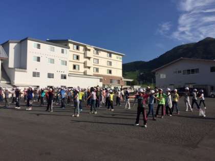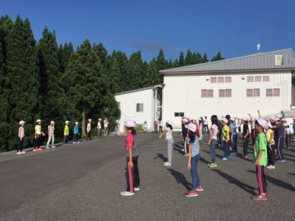 最終日の朝を迎えました。みんな元気です。ウグイスのさえずりが聞こえる中、ラジオ体操をしました。