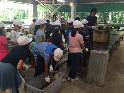 最後のプログラムは、焼き板作りです。先ずは、宿舎の方の説明を聞きました。