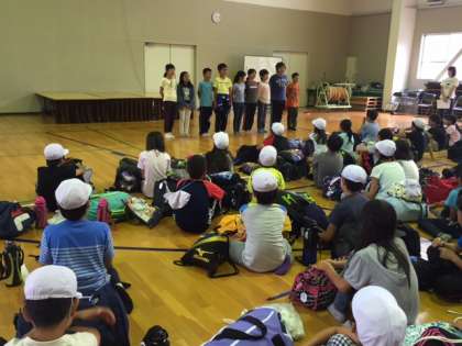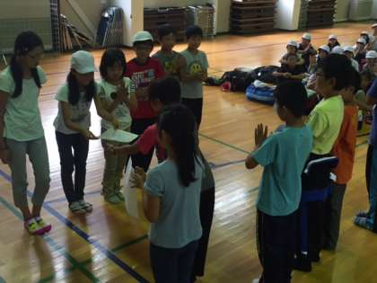 焼き板の後、時間にゆとりがあったので、学校に帰ってから行う予定だった南田辺オリンピックの表彰式を行いました。優勝チームには係の子どもたちの手作り表彰状が授与されました。