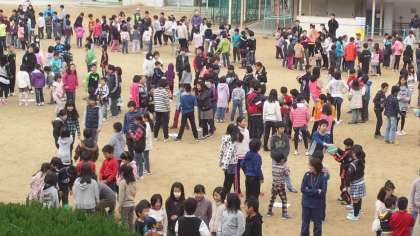 たてわり班ごとにボール回しゲームを楽しみました☆