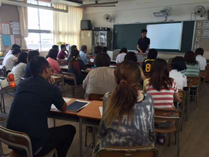 先ほどの拡大新任研修会に引き続き、全教員対象で、「特別支援教育研修会」を実施しました。子どもたちの「状態」だけを見て指導するのではなく、その「状態」の原因となる「背景」は何なのかを正確に捉え、適切な支援をしていくことが大切であることをみんなで再確認しました。