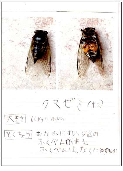 各教室には、夏休みに子どもたちが取り組んだ自由研究が掲示・展示されています。その中からいくつかをご紹介します。まず、2年生の「セミのかんさつ」です。詳しくは→こちらをご覧ください。