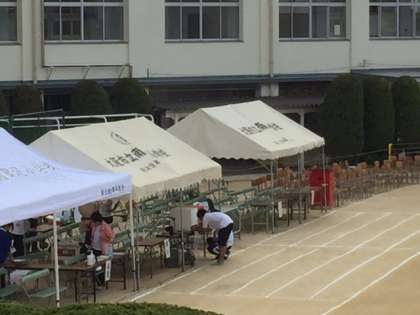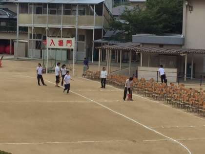いよいよ運動会当日です。教職員が運動場や準備物の最終点検をしました。ただ、気になるのは天気です。途中で雨が降った場合は、以降のプログラムを変更する可能性があります。予めご了承ください。
