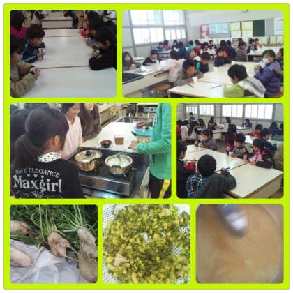 昨日収穫した田辺大根をみそ汁に入れ、みんなでいただきました☆☆☆