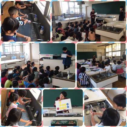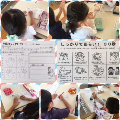 予想以上に汚れが残っている児童も多く、1学期に習った手洗いの歌にあわせてみんなで手洗いをし、再度チェックするとほとんどの児童が1回目より綺麗に洗えていました☆☆