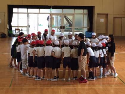 今日の2〜4時限目にかけて、5年生の各クラスを対象に「大阪信用金庫プレゼンツ さくら・夢授業バスケットボール教室」を開催していただきました。コーチは大阪エヴェッサスポーツクラブの方です。最初に円陣を組み、みんなで掛け声をかけて授業が始まりました。体育館内を2周した後、軽く体操しました。