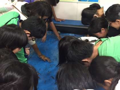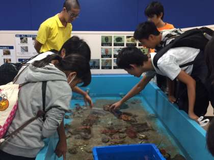 エビなどを触ったり、ドクターフィッシュの水槽に手を入れたり、マンボウなとたくさんの魚を見たりしました。