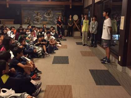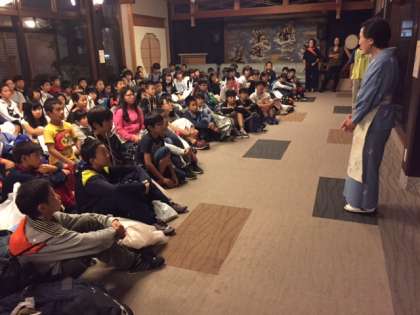パークホテル「みち潮」に到着しました。開舎式の後、各部屋に入りました。その後、避難訓練をしました。