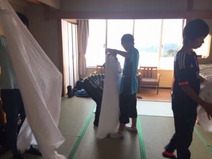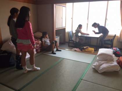 朝一番。子どもたちは協力して部屋の片付けをしています。