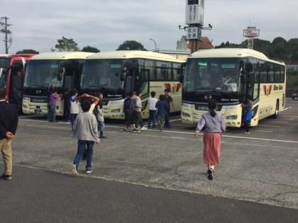 上野ドライブインで最後のトイレ休憩をしました。今から学校に向けて出発します。順調に行くと、後1時間ちょっとで、学校に着きます。