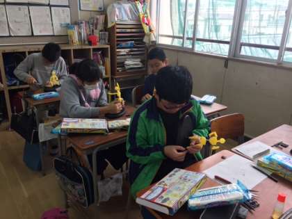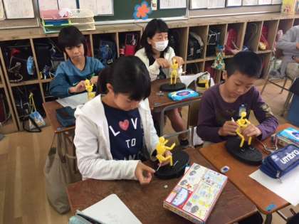 19日〜20日にかけ、修学旅行に出かけていた6年生ですが、21日はいつも通りに登校しました。粘土で将来の自分を表現していました。まず芯材で骨組みを作り、それから、粘土で肉付けしていきます。仕上がりましたら各教室に展示しますので、是非、ご覧ください。