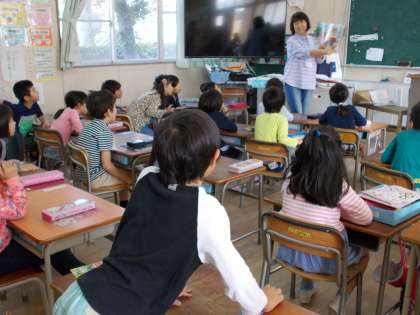 1年生で、はぐくみネットの方々による「おはなしランド」がありました。今日は乗り物に関する絵本というテーマで各クラス違う絵本を読み聞かせていただきました。「がんばれ!パトカー」(竹下文子:作 鈴木まもる:絵)「のりたいな でんしゃ とくべつごう」(視覚デザイン研究所:作 くにすえ たくし:絵)「うみへ いく ピン・ポン・バス」(竹下文子:作 鈴木まもる:絵)「はしれ はしごしゃ」(間瀬なおかた:作 絵)という4冊の絵本です。しばらく教室においてもよいとおっしゃっていただいたので、4クラスで順に回していきます。読み聞かせがきっかけとなって子どもたちの読書が広がっていくとよいと思います。