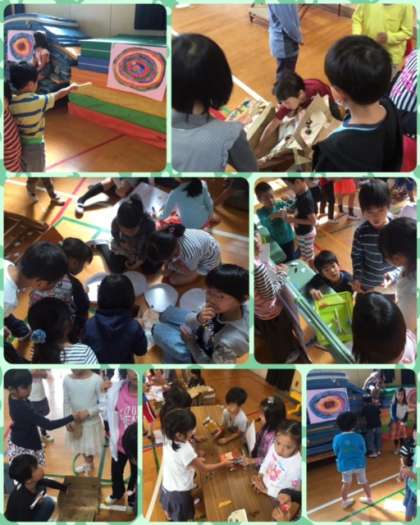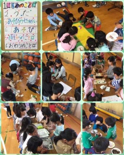 あそびの説明を聞いたあと、1年生が楽しいお店をまわります☆☆