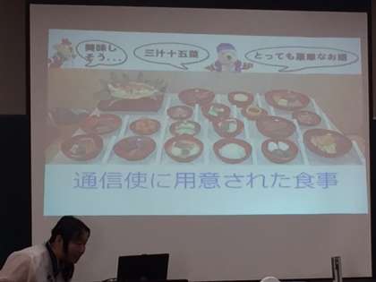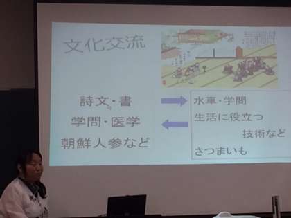 昨日1日(火)、加美小学校の民族講師の先生にお越しいただき、朝鮮通信使の学習をしました。約300日かけて、対馬から江戸の間を往復したとか、三汁十五菜という豪華な食事で通信使をもてなしたという教科書にはない詳しいお話も聞かせていただきました。通信使が通ったさまざまな場所には今でも、“ゆかりの地”として大切にされている場所や、祭りが残っているということも教えていただきました。一番近い外国で、昔から文化交流も盛んに行っている韓国、朝鮮との友好の歴史を学びました。