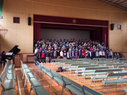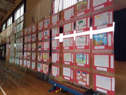 いよいよ今週末の19日に迫った創立80周年記念式典に向けて、今日は6年生が「児童よろこびのことば」を練習していました。呼びかけの後、「道」という歌を全員合唱します。全校児童代表としての役割をしっかり果たしてくれると期待しています。また、講堂側面には有志の子どもたちが描いた「未来の南田辺小学校」の絵を掲示しています。