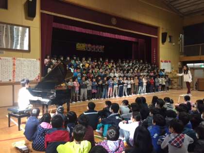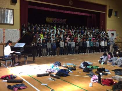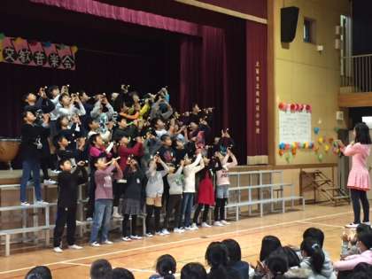 昨年度の卒業文集に、小学校生活の思い出として「4年生になり、やっと交歓音楽会に出ることができるようになりました。」ということを書いている子どもがいました。交歓音楽会は、1〜3年生の子どもたちにとっては4年生以上のお兄さん、お姉さんたちの演奏を聴き、憧れを持ち、自分たちも4年生になったら、あんな演奏ができるようになるんだと目標を持つ機会になります。また、4年生から5年生の子どもたちにとっては、クラスで、そして、学年で一つの曲を仕上げるという活動を通して、絆を深める機会となります。指揮者の表現力の豊かさ、その指揮者を見て演奏する子どもたちの真剣な眼差しは、さながらプロのコンサートのようでした。