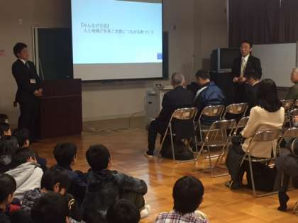 昨日8日(木)に、先の記事でお知らせした6年生の町づくりについてのプレゼンを地域の方々に聴いていただきました。東住吉区長さん、南田辺連合振興町会長さん、東住吉区役所政策推進課長さん、長居パークセンター長兼長居植物園長さん、長居パークセンター調整担当部長さん、南田辺本通商店街振興組合理事長さん、そして、6年1組の保護者の皆さんが来てくださいました。—『みんなが主役』人と地域が未来と世界につながる町づくり—というテーマで子どもたちが7つの班に分かれ、根拠となる数字や、参考となる資料も提示しながら、それぞれの思いを発表しました。区長さんからは「思わず、メモをしながら聞かせてもらいました。具体的な提案ばかりで子どもたちの目線に感心しました。」と言うメッセージを子どもたちに送っていただきました。皆さんから、温かいお褒めの言葉をいただき、子どもたちも達成感を味わっていました。子どもたちが自分たちの住む東住吉区に、そして南田辺の町に関心を持ち積極的に町づくりに参加するきっかけになったのではないかと思います。ご多用の中、子どもたちのために学校へお越しいただいた皆様ありがとうございました。