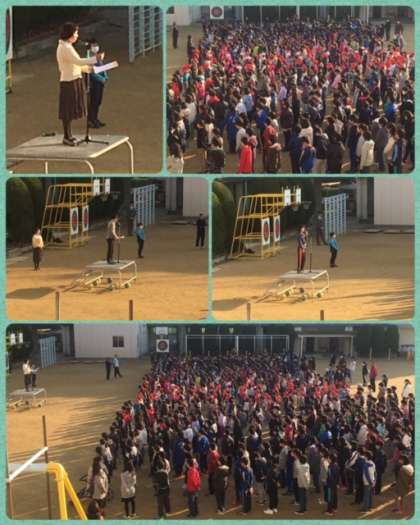 朝会が終わると子どもたちは並んで教室に向かいます。その様子を見守っていると、5年生の子どもが「話を聞きながら、あと1か所汚れているのは自分の心やと思ってた。」と私に伝えてくれました。考えながら話を聞いてくれているんだと感心しました。