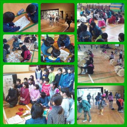 講堂で班ごとに分かれて、外国の遊びをいろいろ体験しました!!!