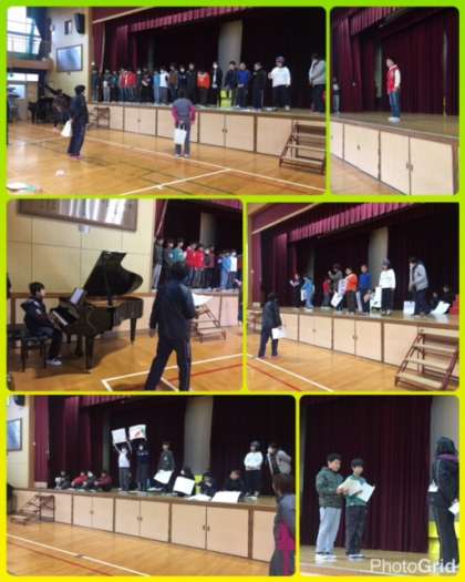 今週木曜日の児童集会に委員会発表をする給食委員会が講堂でリハーサルを行っていました☆☆☆