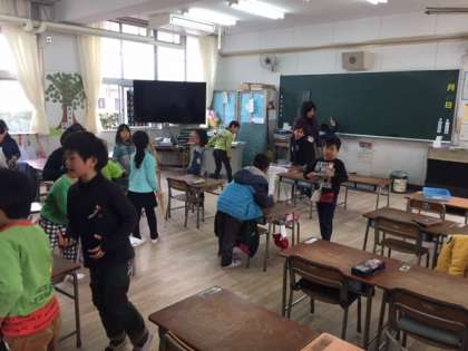 給食が終わり、昼休憩をした後は、掃除時間です。今日はとても寒いですが、どのクラスも、みんなで協力して教室、廊下・階段、特別教室などをきれいに清掃していました。身の回りをきれいにすると、すっきりして、気持ちも前向きになり、学習にも身が入ります。