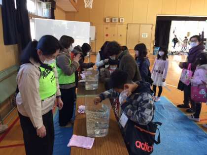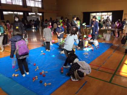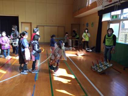 昨日、PTA主催の恒例行事「冬フェスティバル→冬フェス」が開催されました。昔遊び、コイン落とし、輪投げ、スマートボール、フェイスペインティングなどのコーナーがありました。
