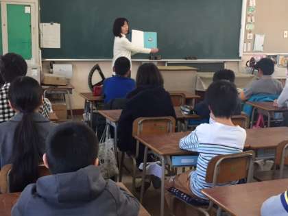 今日は5年生の各学級ではぐくみネットの方々による、「おはなしランド」がありました。「はやくはやくっていわないで」(益田ミリ:作 平澤一平:絵)の読み聞かせをしていただきました。