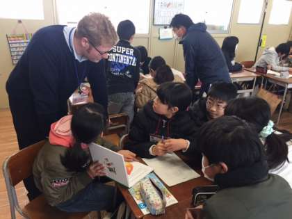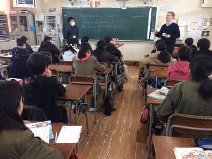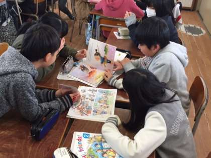 今日は6年生はC-NETメイソン先生と、5年生はアンジェラ先生と外国語活動をしました。6年生はグループに分かれ、英語劇の台本作りをしていました。わからないことがあったら、メイソン先生に次のようなフレーズで尋ねていました。