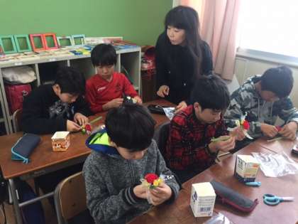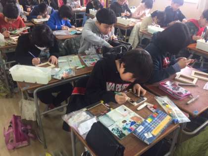 朝登校して来た6年生に「卒業まであと何日?」と尋ねると「12日です」と言う返事が返ってきました。「と言うことは後12回しか朝の挨拶ができないということですね。元気なあいさつをしましょう。」笑顔で「おはようございます。」とあいさつが返ってきました。1時限目、卒業式に各自が胸につけるコサージュをはぐくみネットのみなさんに手伝っていただきながら作っているクラス、国語科の「出会いにありがとう」という学習で各自が考えたスピーチを発表しているクラス、卒業記念の木製写真立てを制作しているクラスがありました。