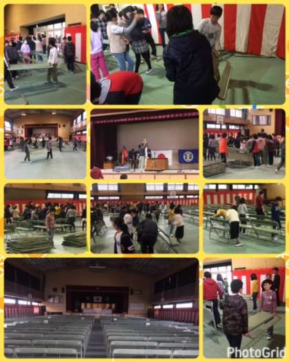 講堂のシートの雑巾かけや、椅子並べ、校内の掃除などをしてくれました!!!