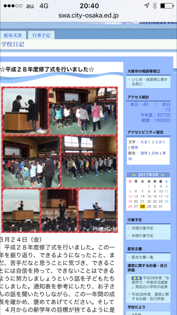 2013年4月に開設した南田辺小学校ホームページへのアクセス総数が、本日100000回に到達しました。たくさんの皆さんにご覧いただいていることに感謝いたします。これからも、学校の様子、子どもたちの様子をお伝えしていきたいと思います。引き続き南田辺小学校の教育活動の推進にご協力をよろしくお願いします。