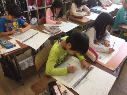 本日5時限目、今年度第1回目の学習参観、学級懇談会を実施しました。5時限目の前の15分間はいつもぐんぐんタイムを行っています。今日は火曜日なので「視写」でした。3回目なので子どもたちも慣れてきたようです。