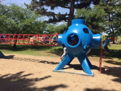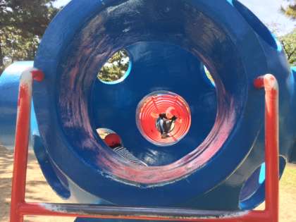 遊具に入り込んだものの、「怖くて降りられへん」と言っている子どももいました。何でも経験です。しばらく悩んでいましたが、無事地面に降り立つことができました。
