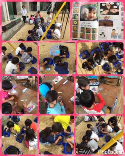 1年生が生活科の時間、自分の植木鉢に土を入れ、あさがおの種をまいていました♪♪♪