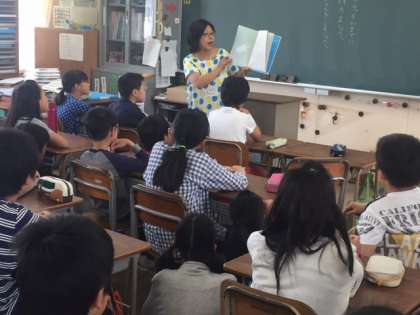 昨日は本年度第1回目の「おはなしランド」がありました。はぐくみネットの方々が来てくださって、年間各学級2回ずつ絵本の読み聞かせをしていただきます。地域の方々、保護者の方々が水曜日の朝の会の時間に、子どもたちにふさわしい絵本を読んでくださいます。学校アンケートで、「本を読むのが好き」と回答する子どもが80%を超えており、「おはなしランド」をとても楽しみにしています。今回は「地雷ではなく花をください」(絵:葉 祥明 文:柳瀬房子)を読んでいただきました。