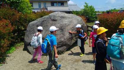 朝、雨がポツポツし始め、心配しましたが、5年生は元気に全員で「飛鳥」めざして出発しました。現地についてからはグループに分かれオリエンテーリングです。「亀石」や「石舞台古墳」を見ながら歴史にも触れているようです。いいお天気になりました。ご家庭で作っていただいたお弁当をゆっくり頂いています。帰りは各学級ごとそろっての行動になります。