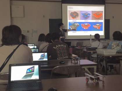教師自身が「プログラミング」に慣れていないと子どもたちに指導できません。そこで、外部から講師に来ていただき、研修会を実施しました。講師の方は「子どものうちにこんな仕事もあるということを知らせてあげることで、将来仕事を決める範囲が広がる」とおっしゃっていました。