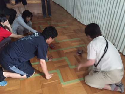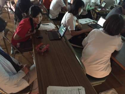 ほとんどの先生が初めてプログラミングを体験し、自分の思っていた通りにロボットを動かすことができ、喜びいっぱいの先生たちでした。でも途中で思っていたのと違う動きになり論理的思考を深めたり、ぺアの先生とコミュニケーションを取りながらプログラムの見直しをしたりする場面も多々ありました。