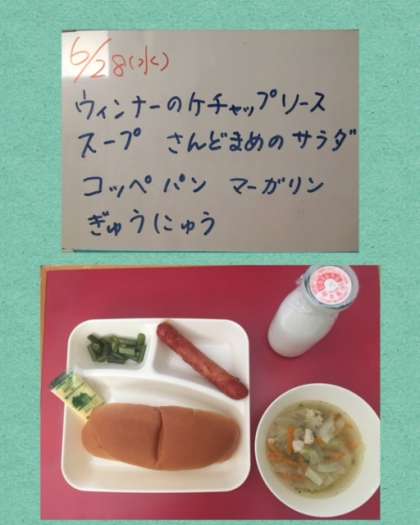 コッペパンにはさみ、ホットドックにして食べている児童も多くいました☆☆☆