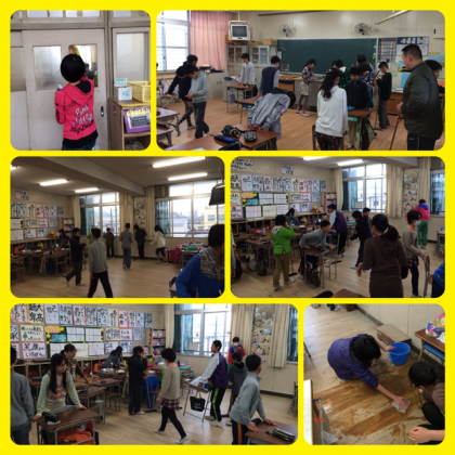 6年間してきた教室の掃除も慣れたものです!!!手際よく机を運んだり、掃いたりしていました!!!