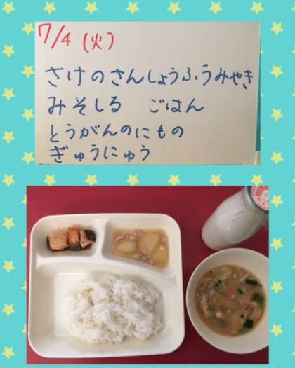 給食を取りにきた児童が、サンプルケースの給食を見て、『大根おいしそ〜』と言っていました・・・