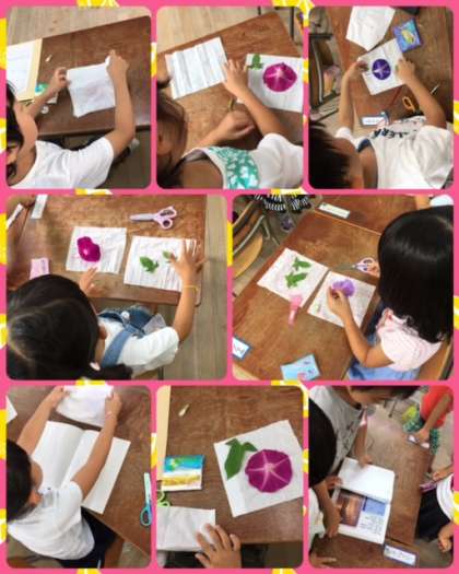 今日はアサガオで『押し花』作りに挑戦です♪♪♪