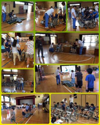 車いすの名称の説明、乗る時の注意点、人をのせて押してあげるときの注意点などのお話を聞き、いよいよ体験です☆☆☆