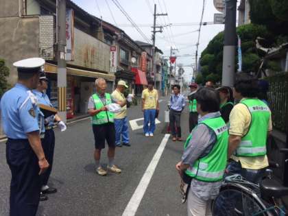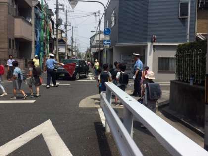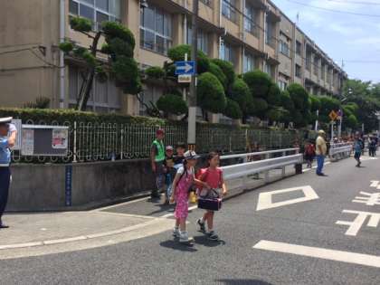 昨日13日(木)13時から14時までの1時間、南田辺連合の方々、はぐくみネットの方々、東住吉警察署 交通課の方々、東住吉区役所ラビット隊の方々、学校、PTAの方々でスクールゾーンパトロールを実施しました。本校の東側道路と北側道路は子どもたちの登下校の安全を守るため、7時30分〜8時30分と14時30分〜17時の間は車両通行規制が行われています。そのことをより多くの方々に知ってもらうためにビラ配りをしました。それとともに、懇談会のため、いつもより早い時間に下校する子どもたちの下校指導も行いました。歩行者も、運転手さんも互いに交通ルールを守り、交通事故の無い町にしていきたいと参加した皆さんで再確認しました。ご家庭におかれましてもお子さんと「交通ルールを守り、自分の命は自分で守る」と言うことを話し合っていただけたらと思います。