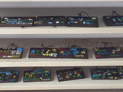 子どもたちひとりひとりが思い出を焼き板に描きました。