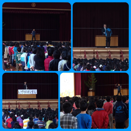 生活指導の先生から春休みの過ごし方のお話がありました!!合言葉は『いかのおすし』です☆☆☆『行かない・乗らない・大声を出す・すぐに知らせる』の意味になっています♪♪♪