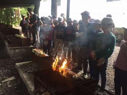 朝食はカートンドッグと野菜&フルーツジュースです。お腹も空いてきました。焼き上がりが楽しみです。