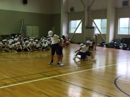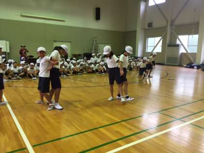 最終4種目めは二人三脚です。何度も転けながらもゴールインするまで頑張る姿にみんなから拍手です。