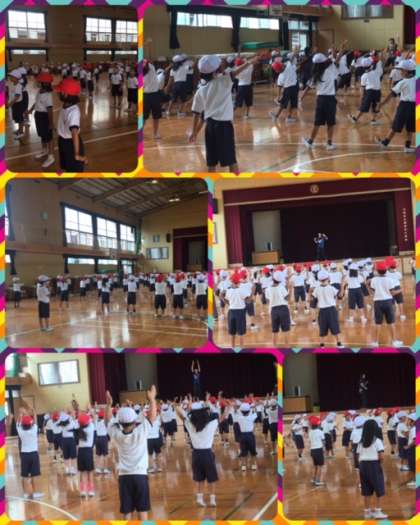 1年生が講堂で運動会のダンスの練習をしていました☆☆☆
