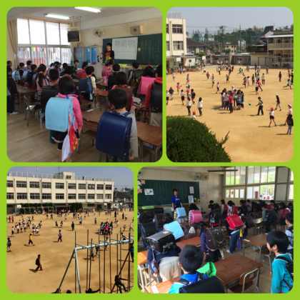 2年〜6年がお昼休み運動場で遊んでいる頃・・・1年生はお帰りの挨拶をしていました♪♪♪